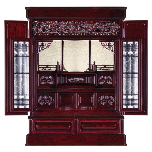 特徴:唐木仏壇 上置型(各宗派用)コンパクトで存在感のあるお仏壇です。お仏壇の高さ・奥行がある程度あるお仏壇です。 上置きですが、内部は比較的ゆったりとお祀り しやすいお仏壇です。